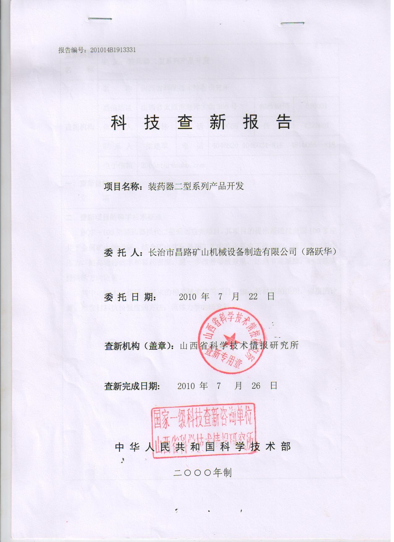 裝藥器二型開(kāi)發(fā)科技查詢(xún)報(bào)告 國(guó)家一級(jí)科技單位